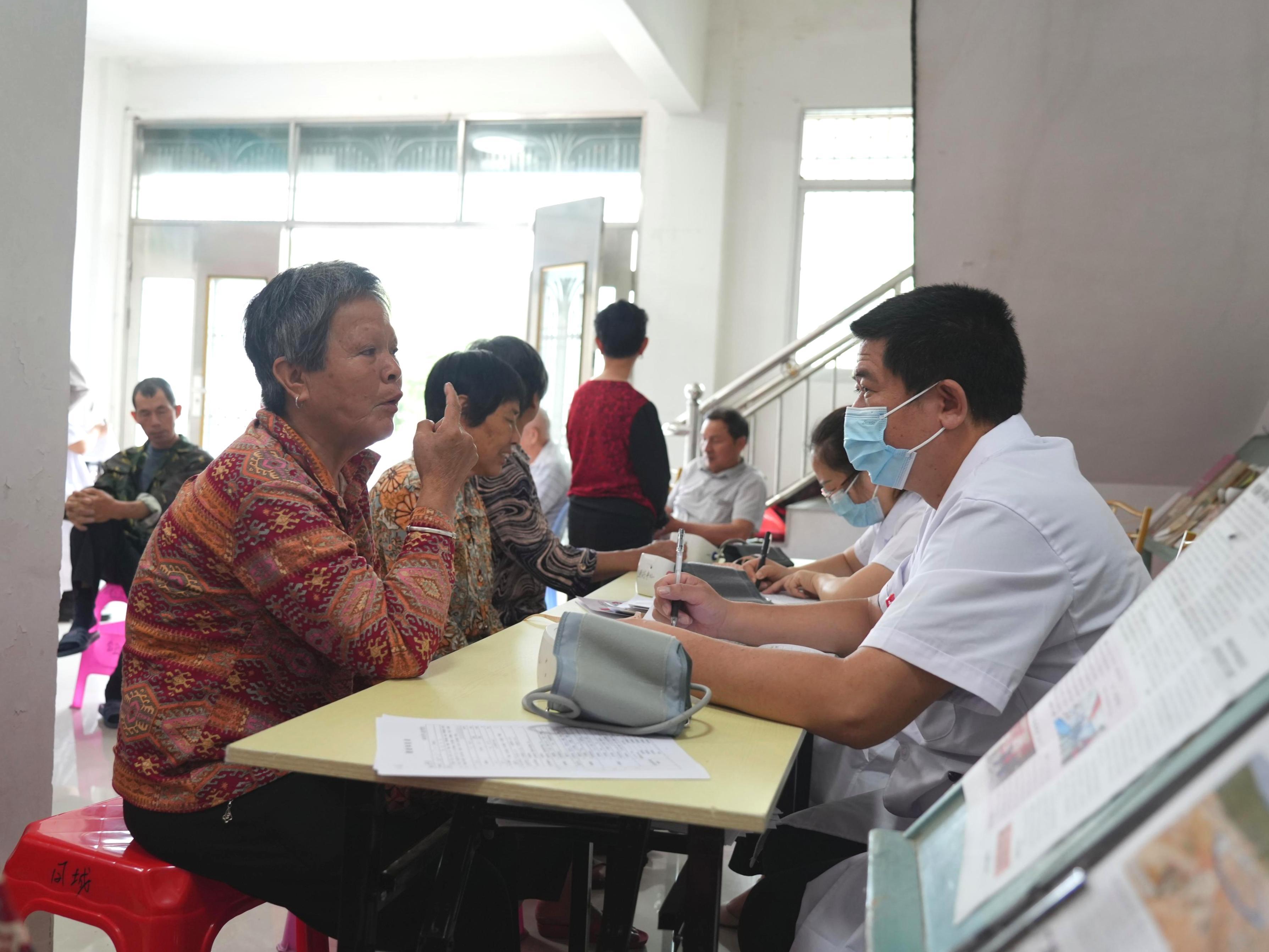 5月7日,鳳城衛生服務中心家庭簽約服務團隊走進大園社區居委會老年活動中心,為65歲以上老年人開展免費健康體檢活動,將便捷的醫療服務送到村民“家門口”。