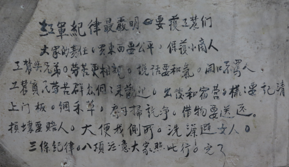 1929年5月紅四軍書寫在龍巖市永定區坎市鎮裕源店的《三條紀律八項注意》歌